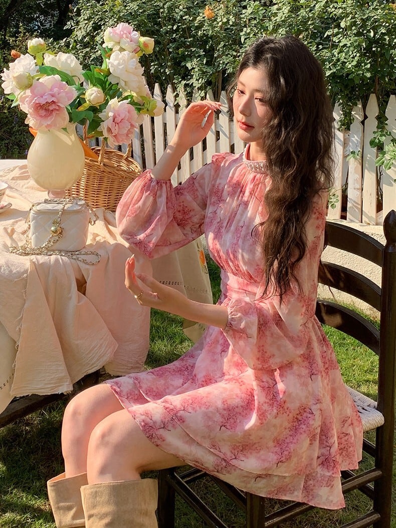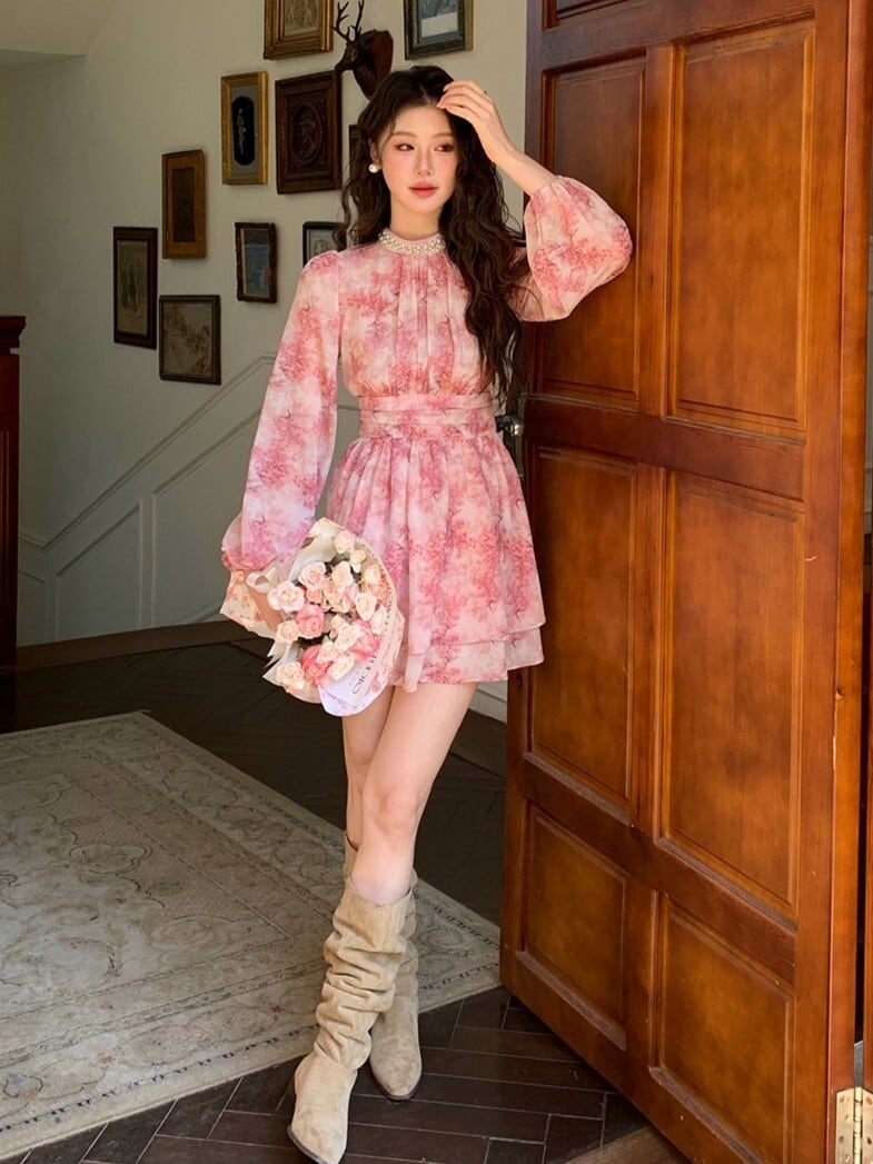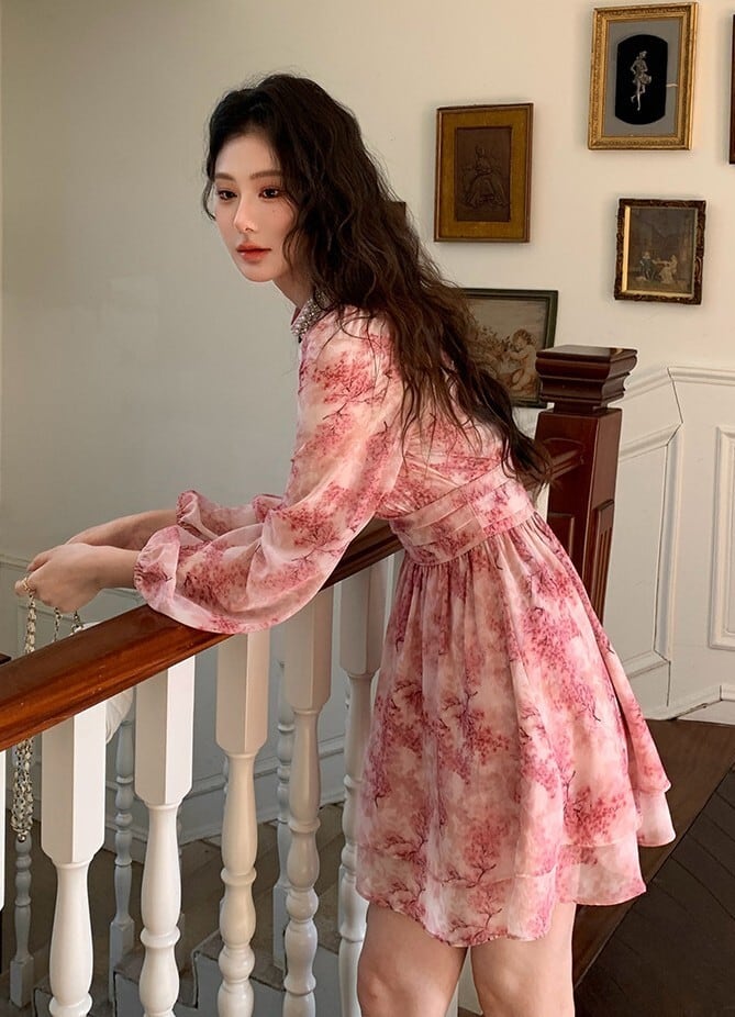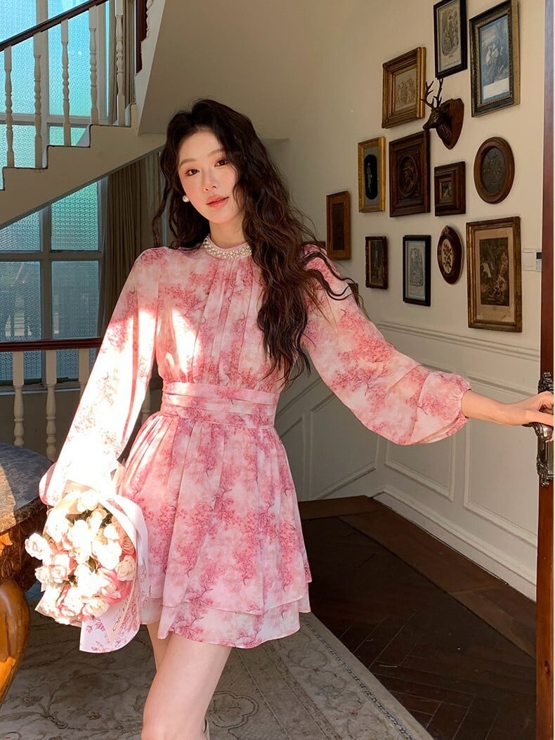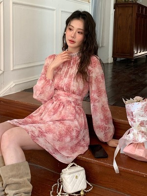 ピンクフローラルワンピース V4665