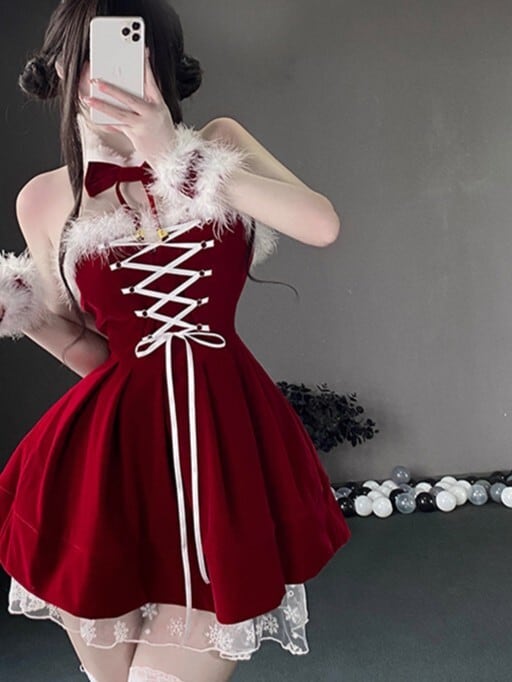 ふわふわストラップミニワンピサンタV05037