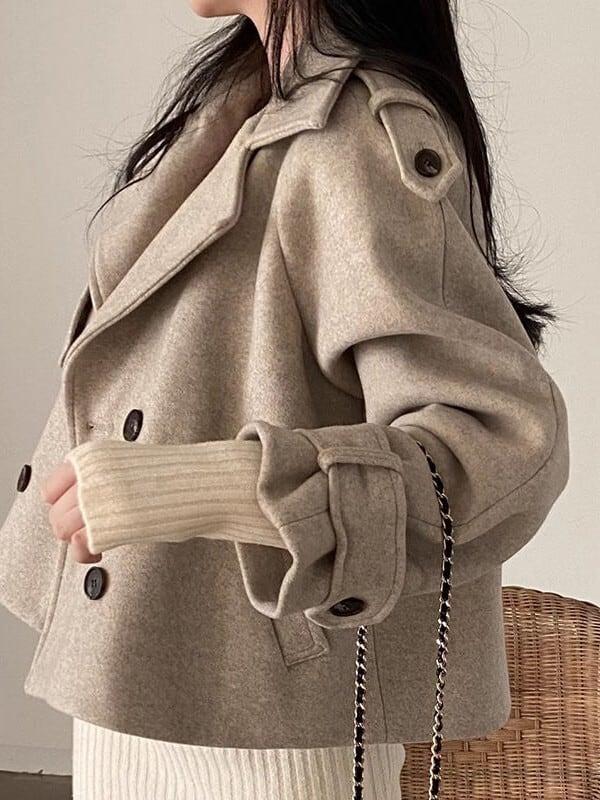 この「ダブルブレストウールショートレディース」は、洗練されたダブルブレストデザインが魅力の一着です。ショート丈のシルエットがスタイリッシュで、カジュアルなコーディネートにも華やかさを添える優れたアイテムです。また、肌触りが良く、快適な着心地を提供します。これにより、デイリーユースから特別な日のお出かけまで、幅広くお楽しみいただけます。
