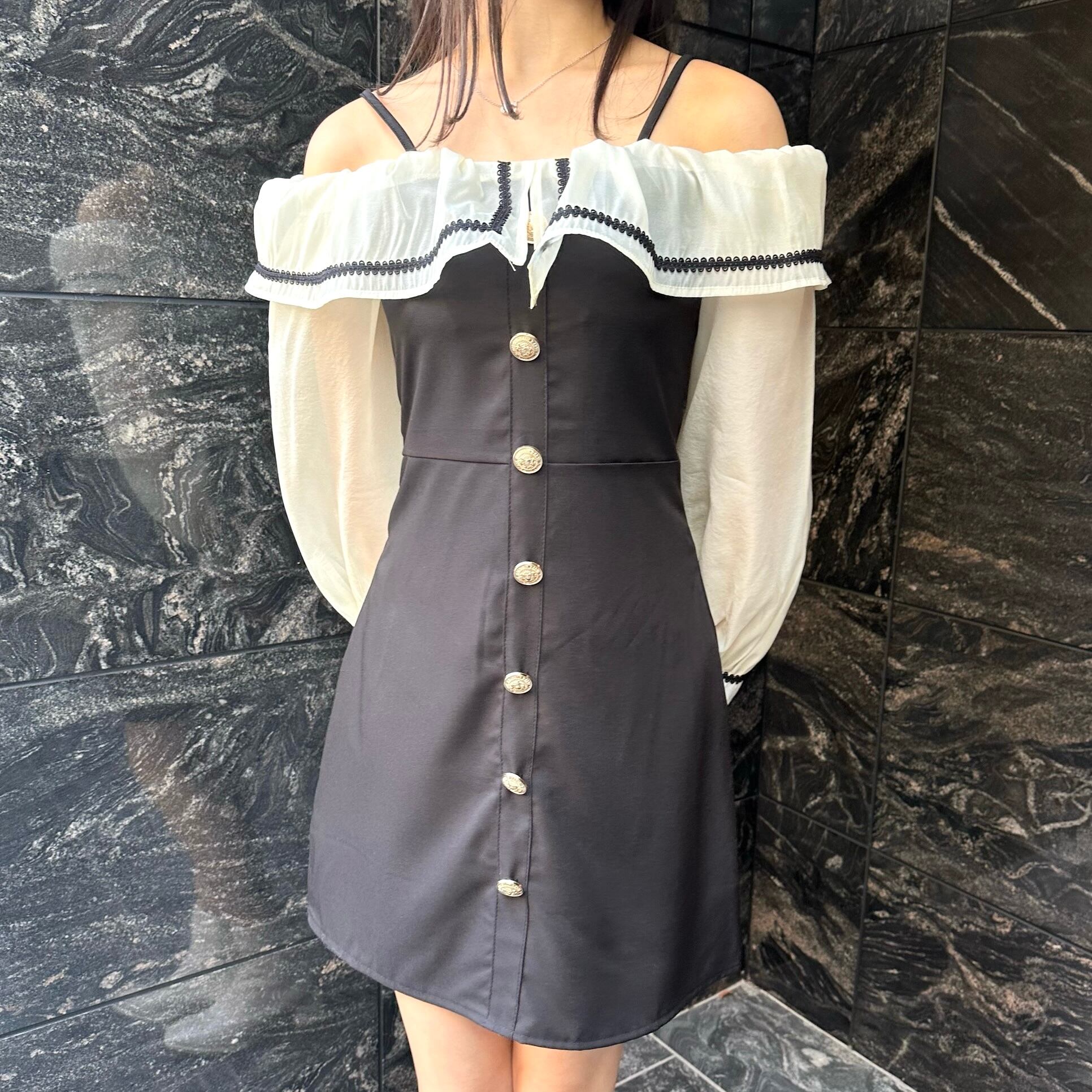 オフショルフリルワンピV01914
