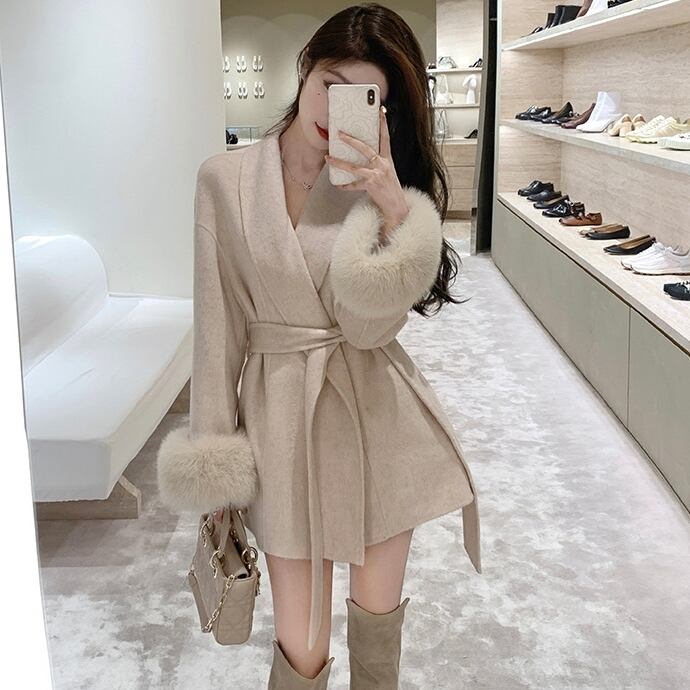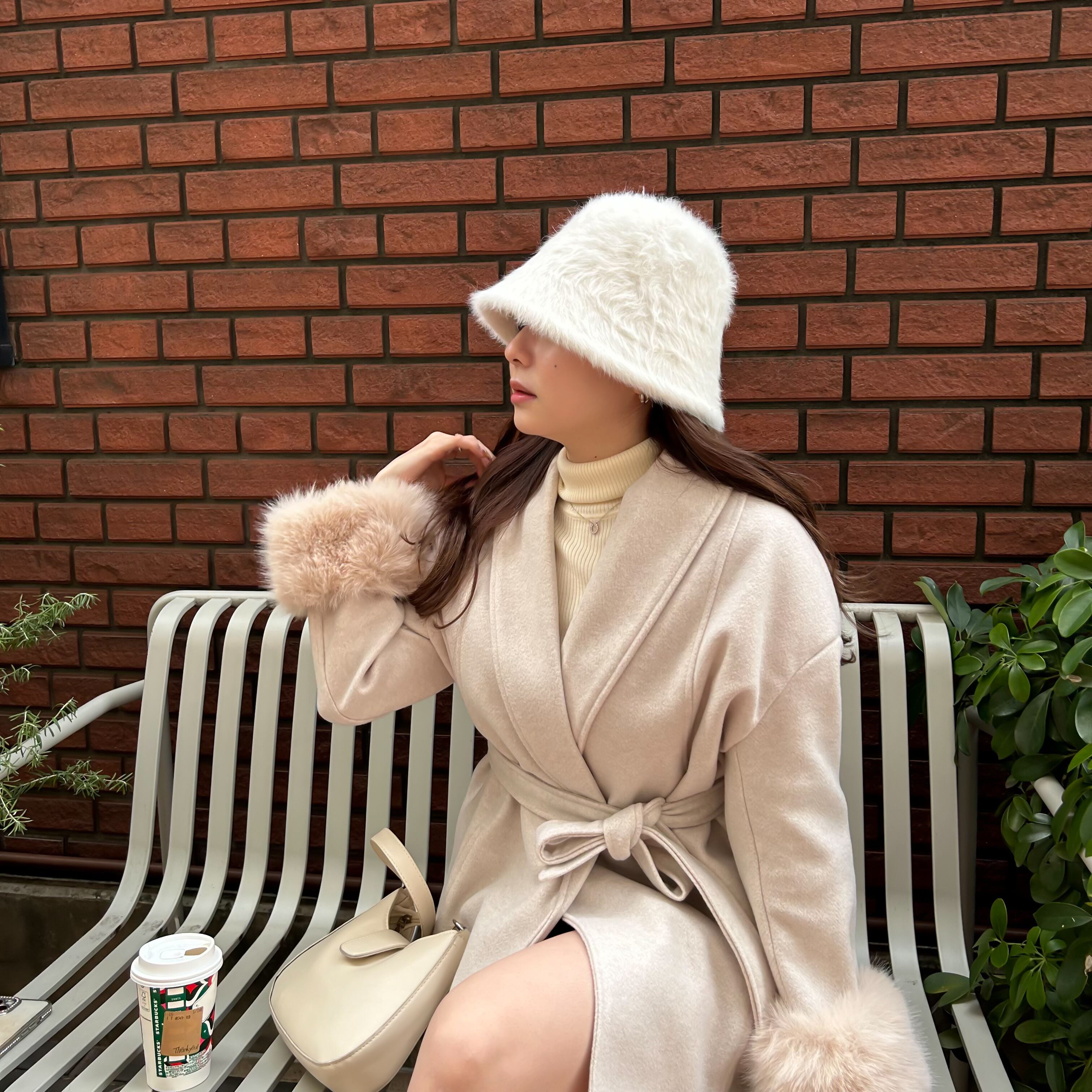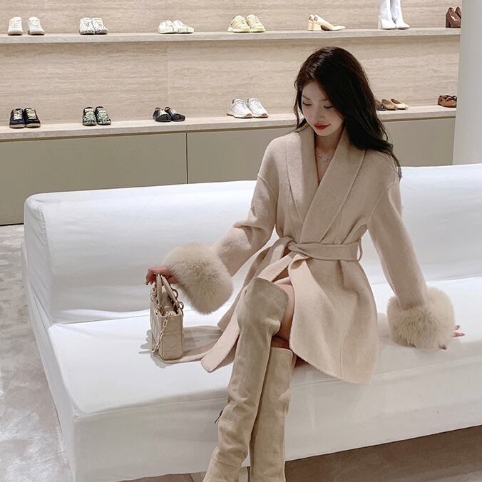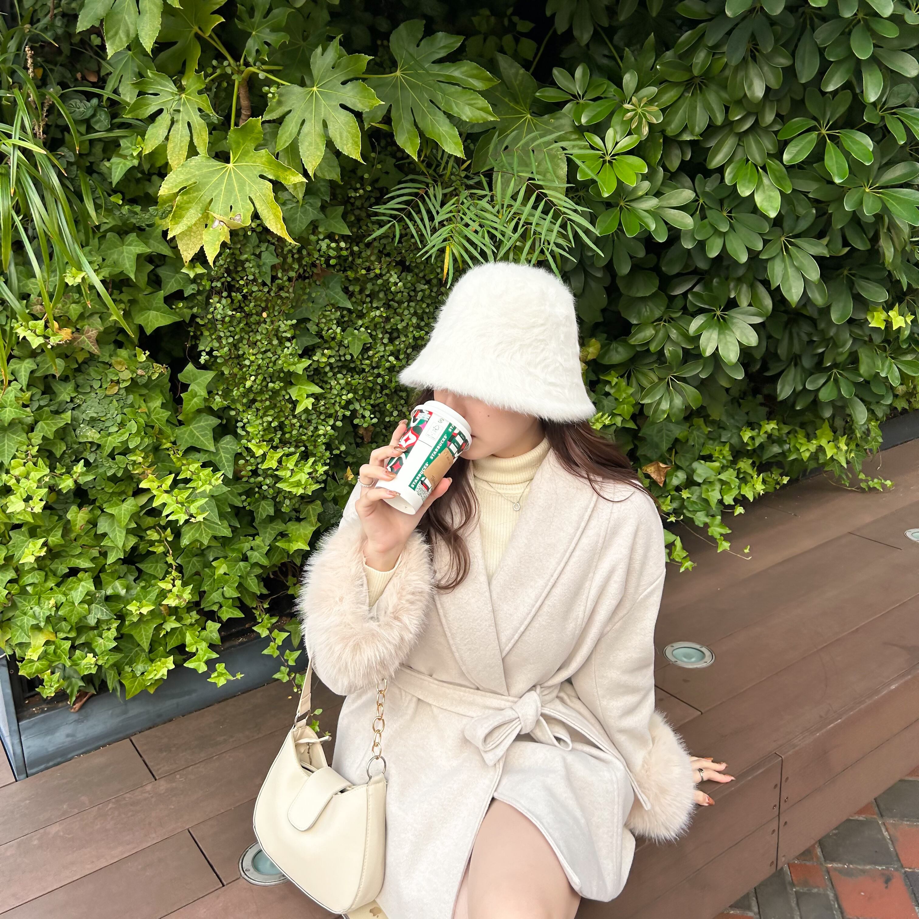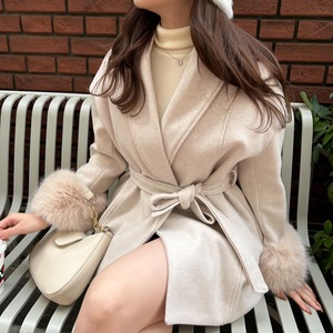 仕様:裏地あり・透け感なし・ストレッチ少しあり・ポケットあり・ベルト取り外し可能・袖ファー取り外し可能
