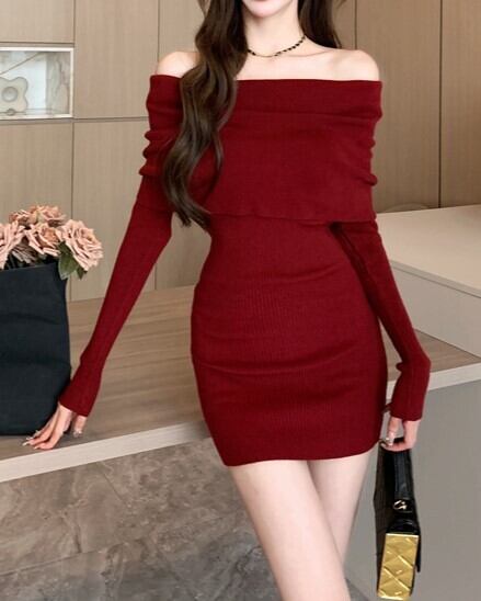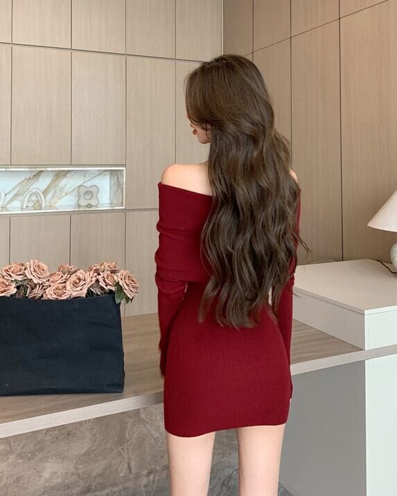 オフショルニットミニワンピ V04526