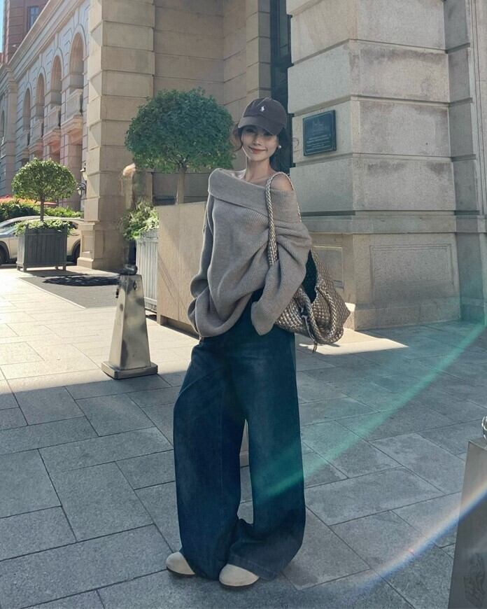 ミニボトムスと合わせた、ワンピース風な着こなしも可愛いです☆