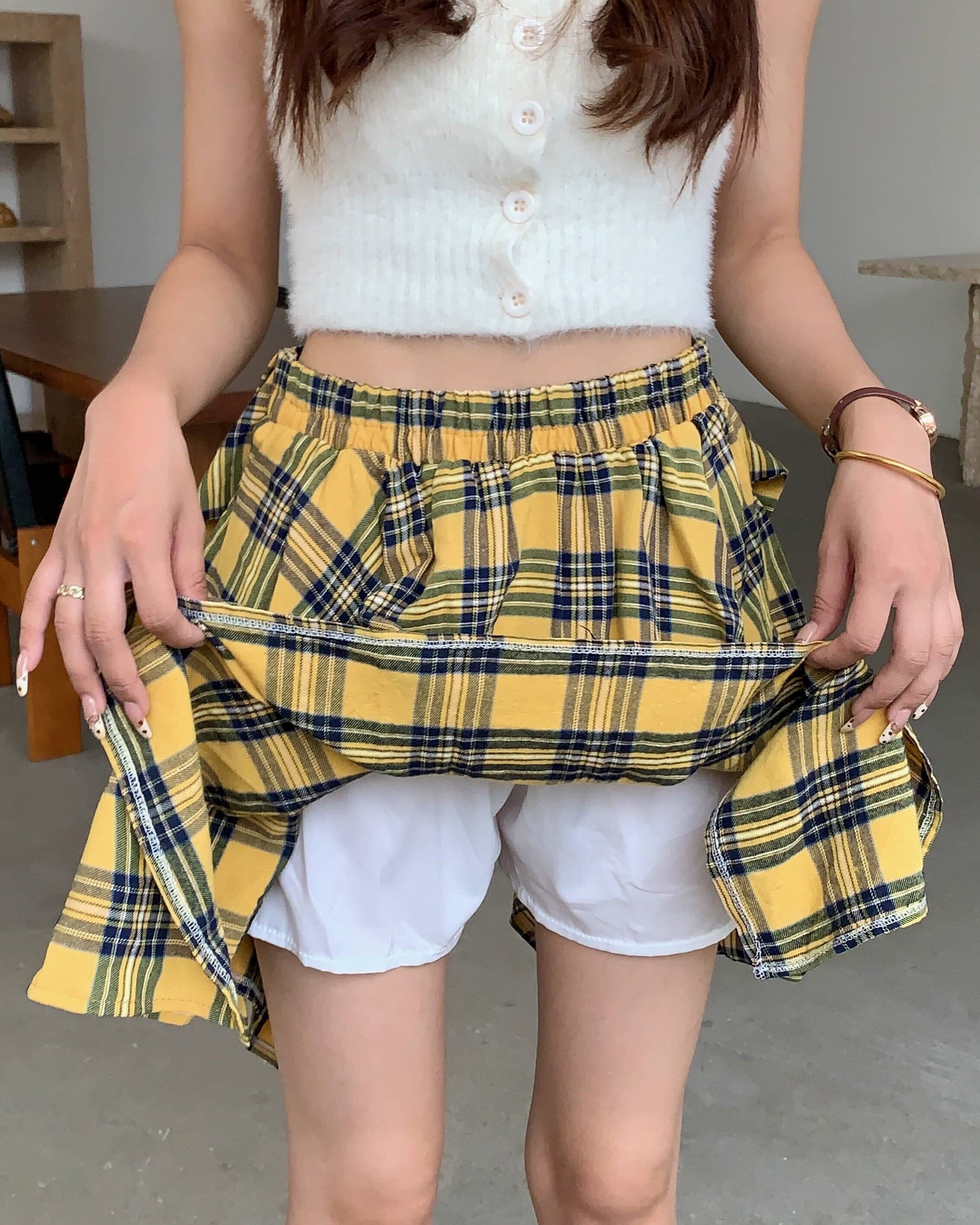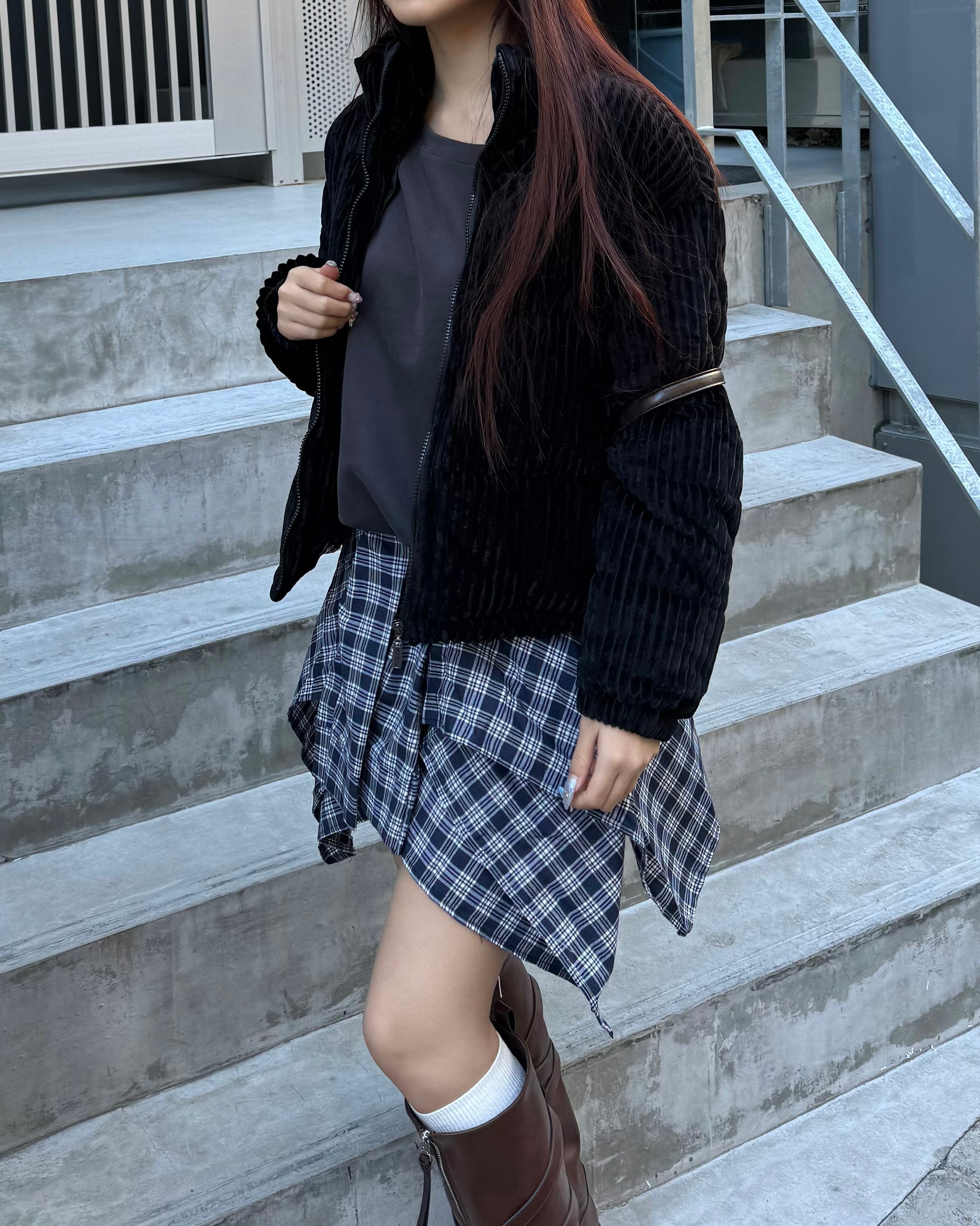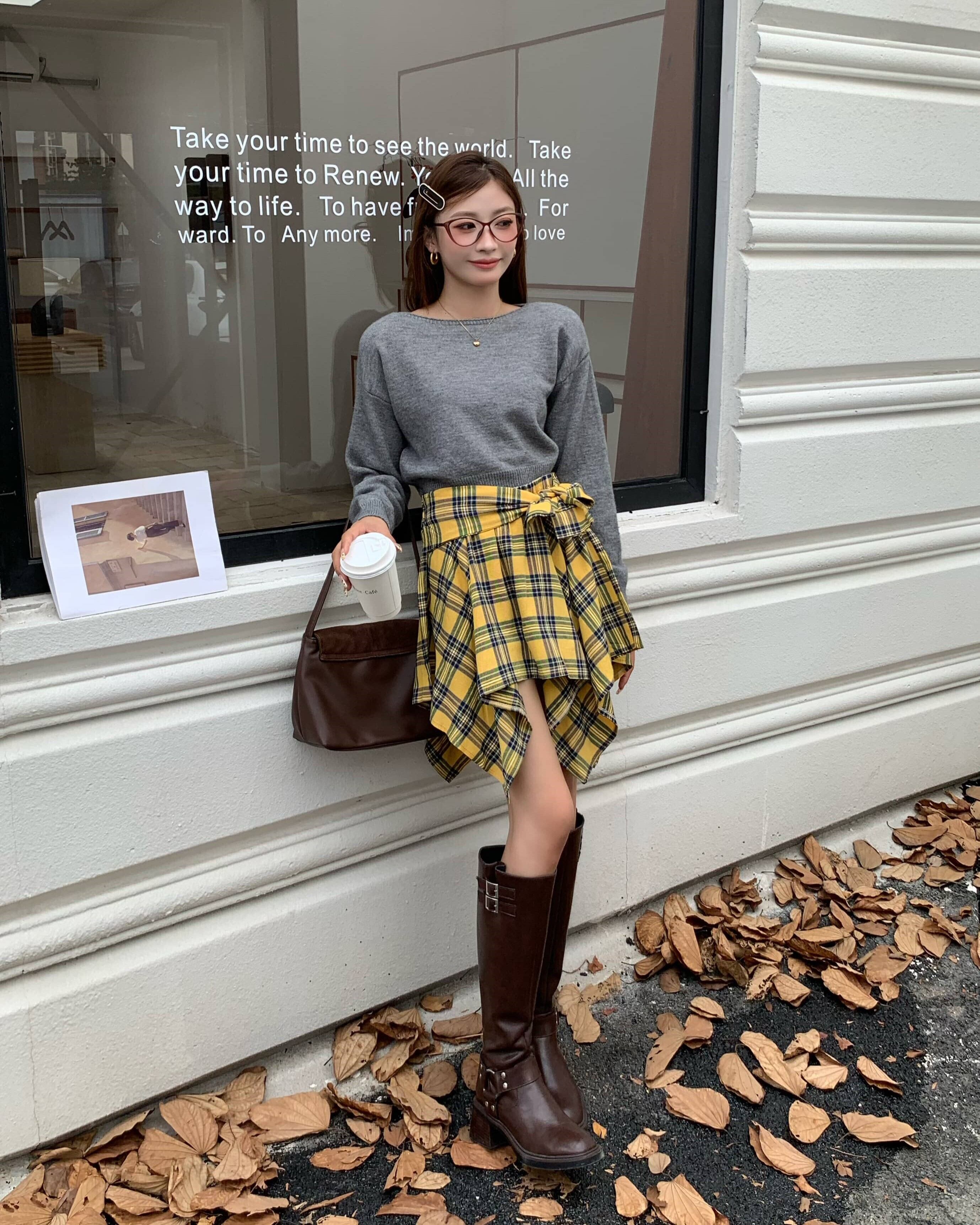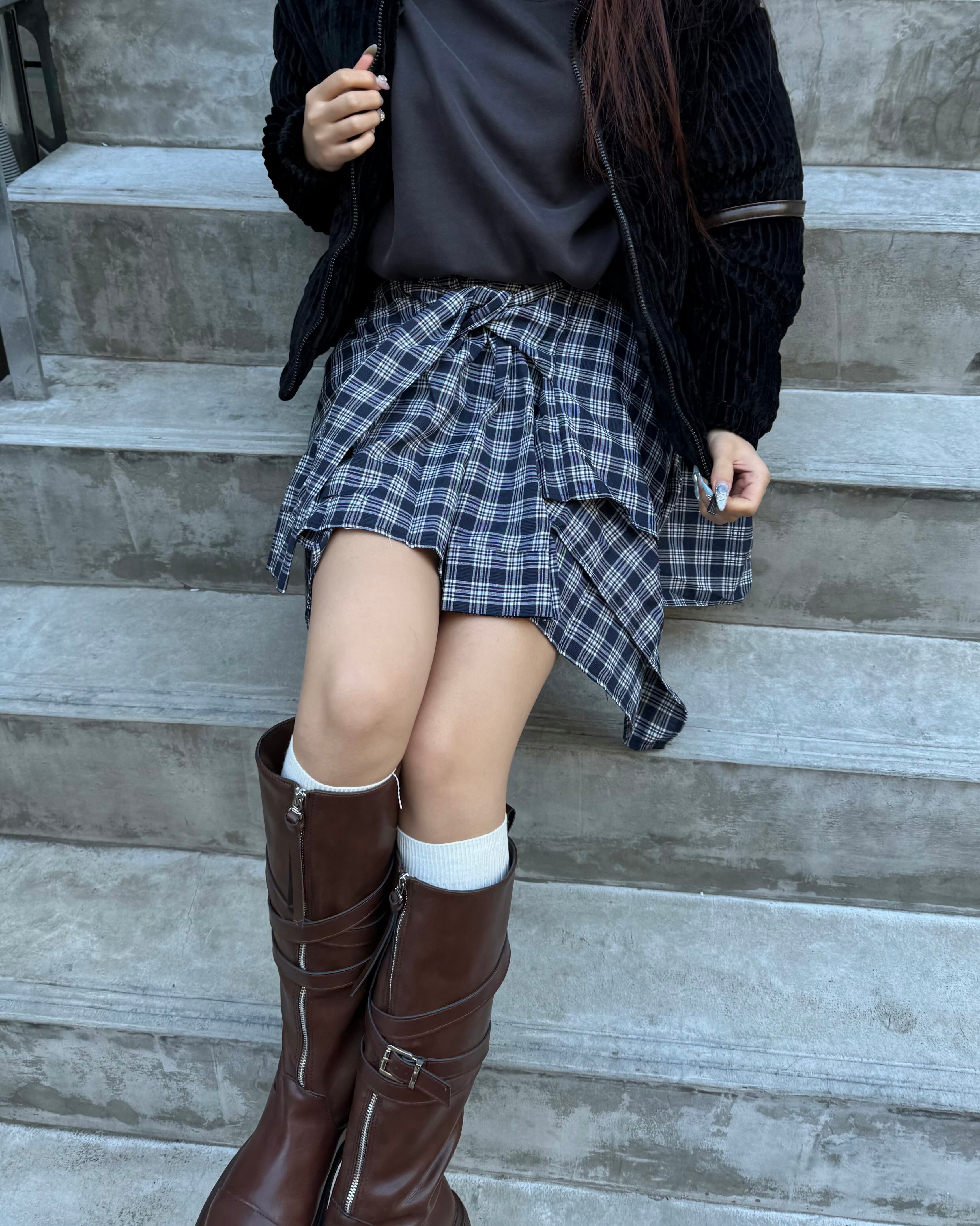 デザイン性抜群☆腰巻風デザインのチェックミニスカートです。