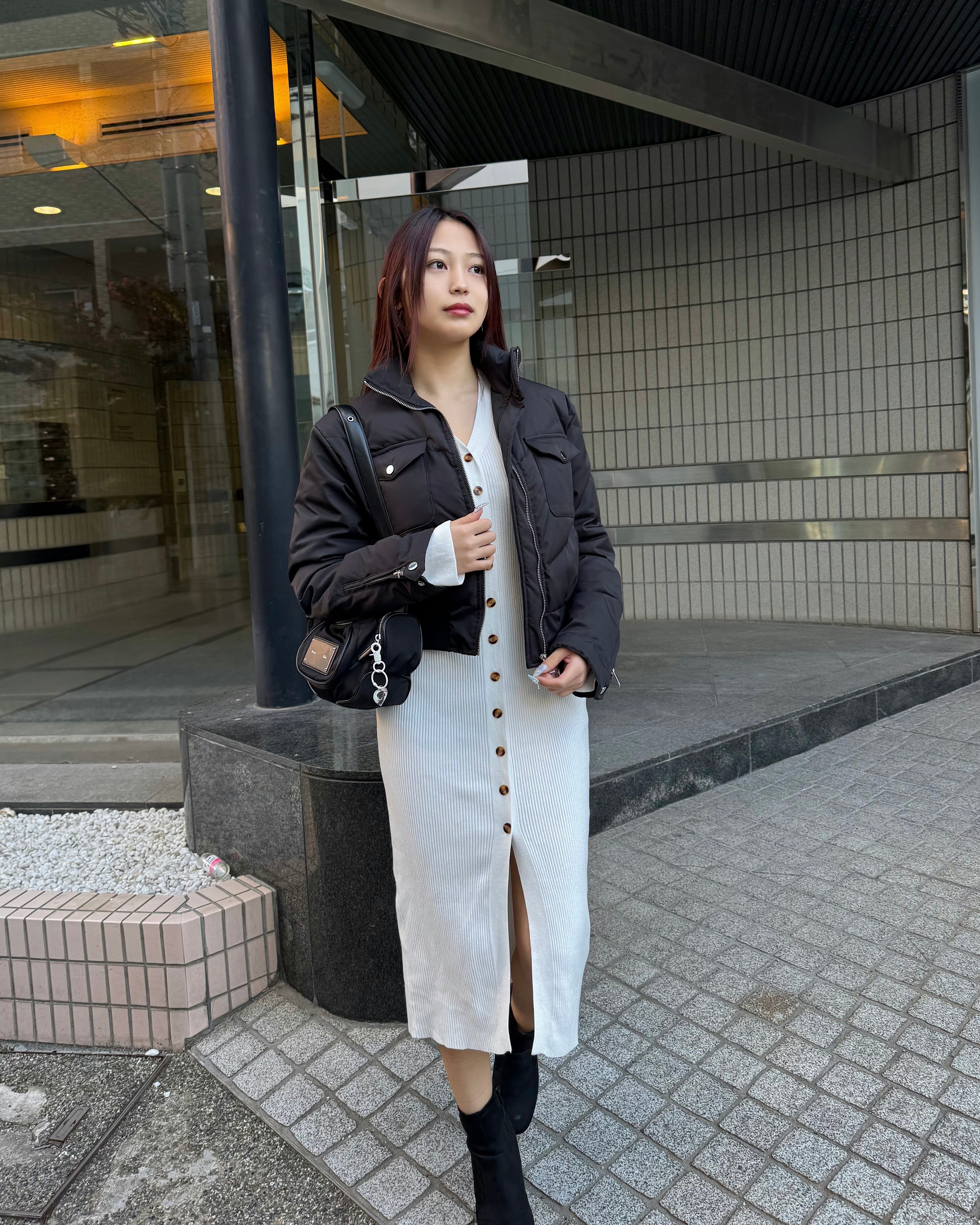 前ボタン開きなので、ボトムスと合わせたレイヤードスタイルもおすすめ★
