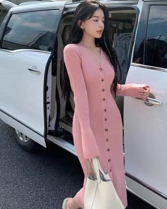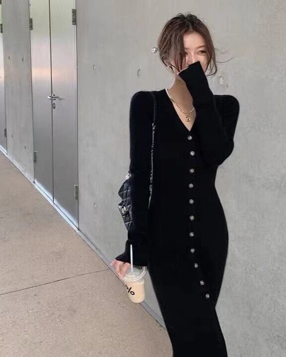 すっきりと開いたVネックで、鎖骨が綺麗に見えます。